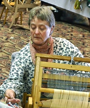 photography: John Blake. Margaret Sunday demonstrating at Taos Fibers Marketplace 2012 by Sharon Niederman,